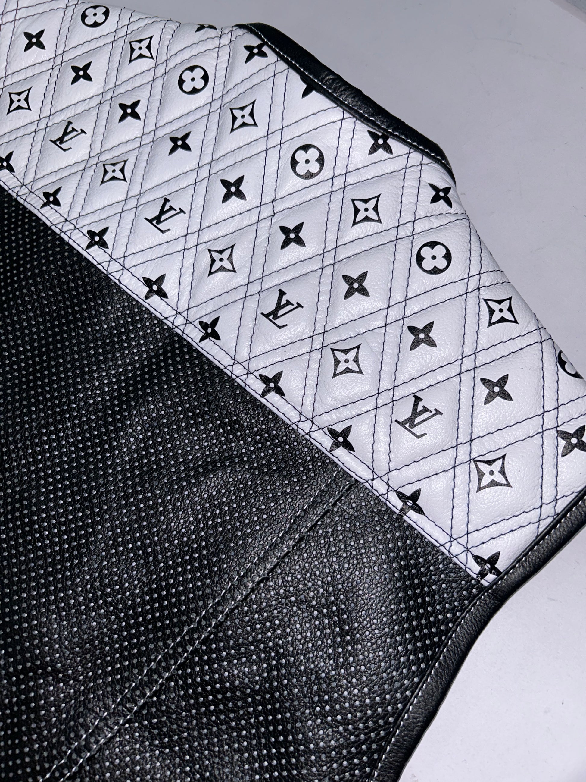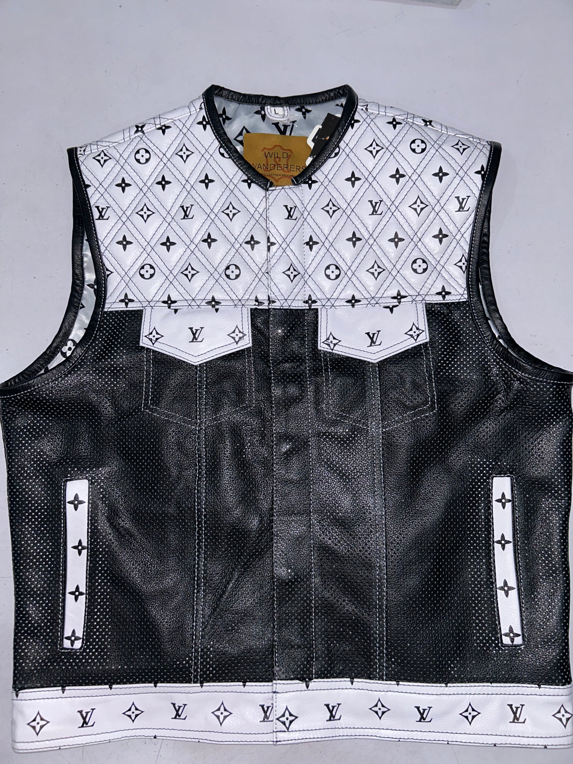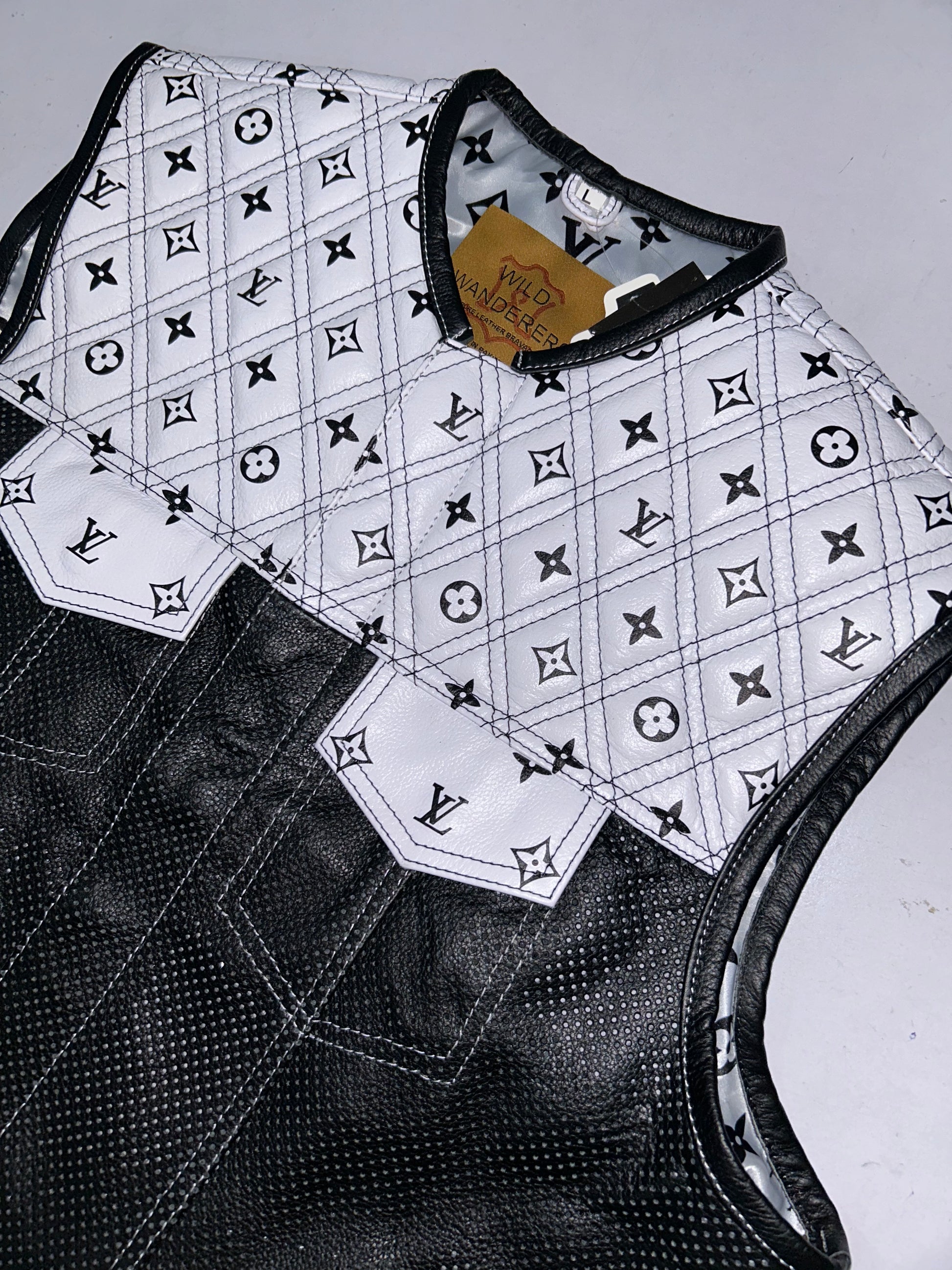 Introducing the Branded White Diamond Quilted with Black Perforated Leather Vest—a masterclass in contrast where premium craftsmanship meets aggressive performance. This vest is for the rider who understands that true style is born from the fusion of bold design and functional innovation.