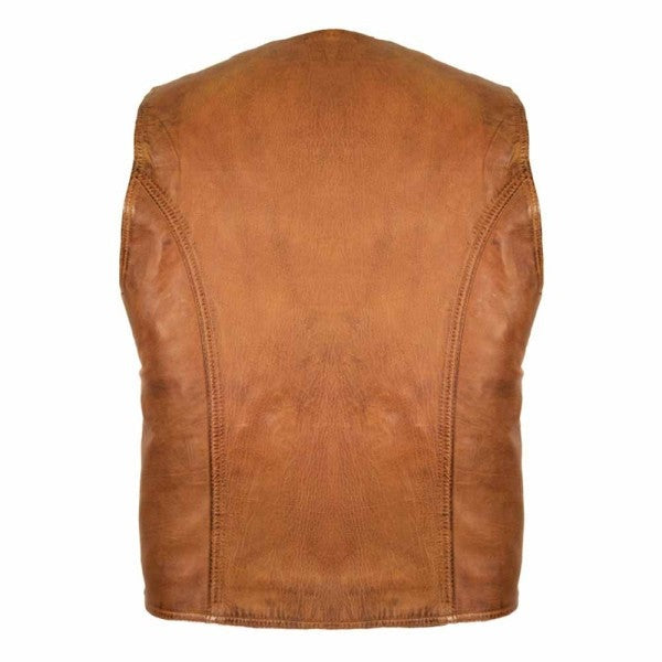 Branded Crocodile and Plain Leather Biker Vest with inside Gun Pockets