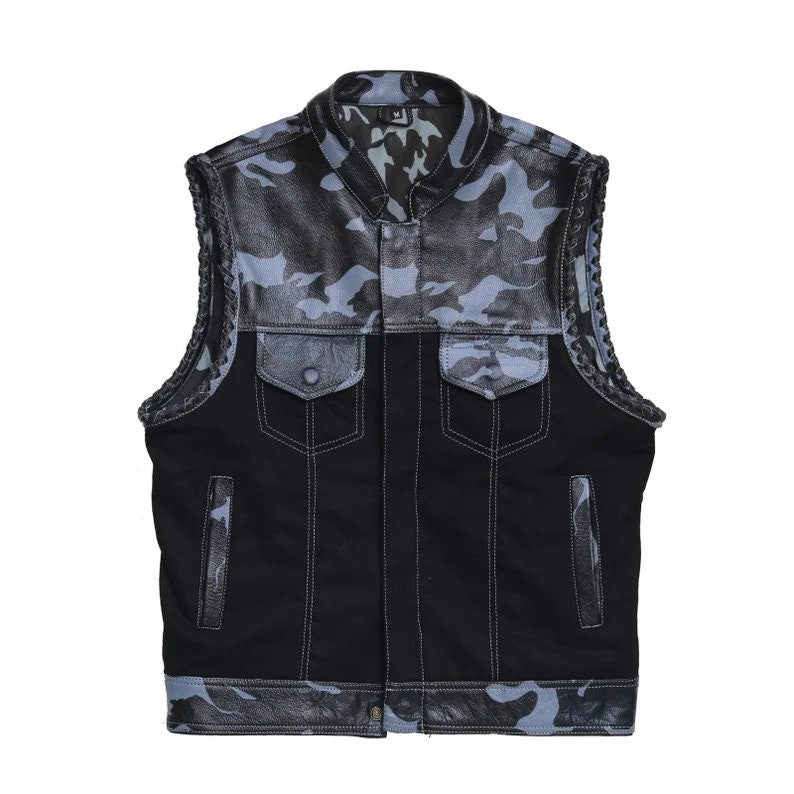 Camo Style Denim Leather Motorcycle Vest – The Ultimate Biker’s Choice