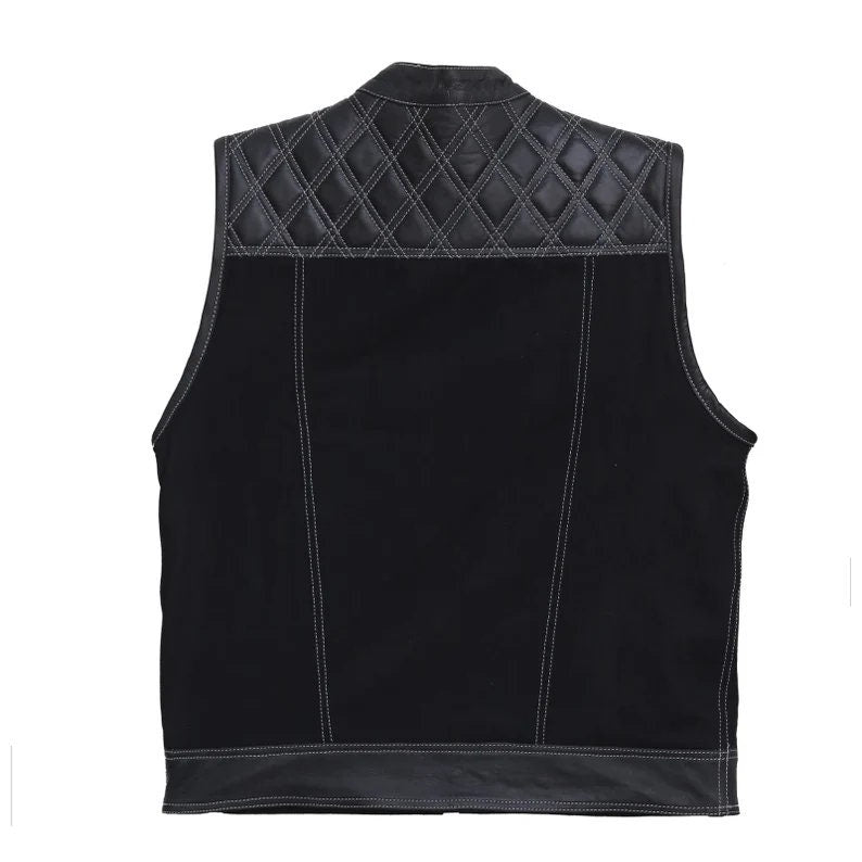 Leather Vest Men's Hunt Club White Black Paisley Leather Build Denim Style Rider Motorcycle Leather Vest Men Vest