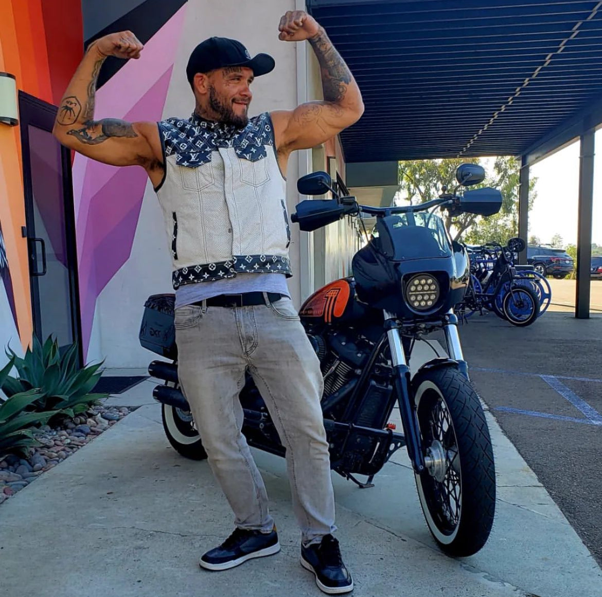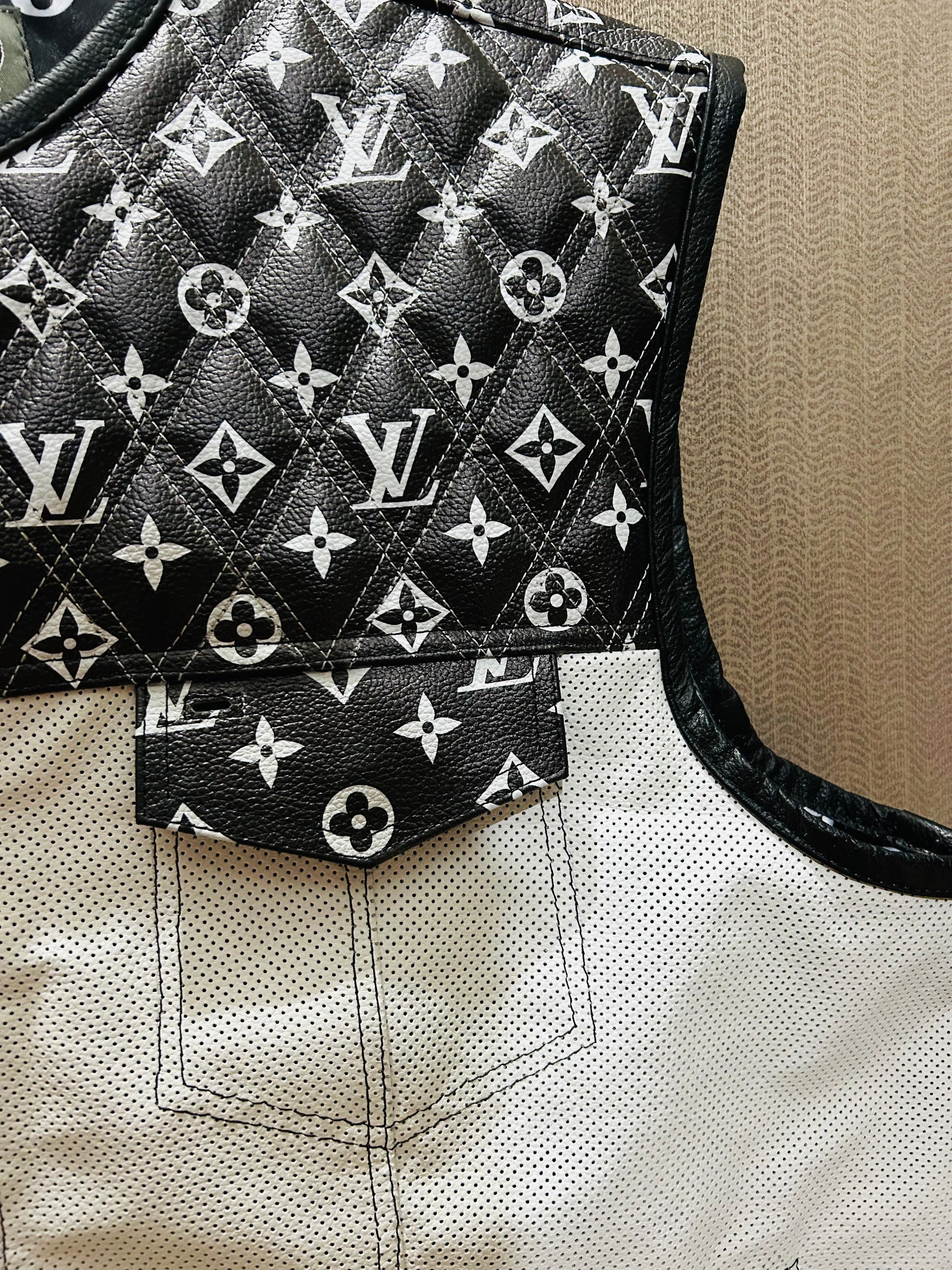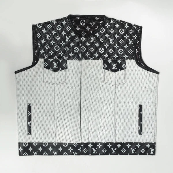 Crafted from premium leather in a sleek club-style fit, the Hunt Club vest blends elegance with rugged function. A cropped zipper, iconic LV-inspired lining, and concealed carry pockets make it the perfect ride-ready statement piece.