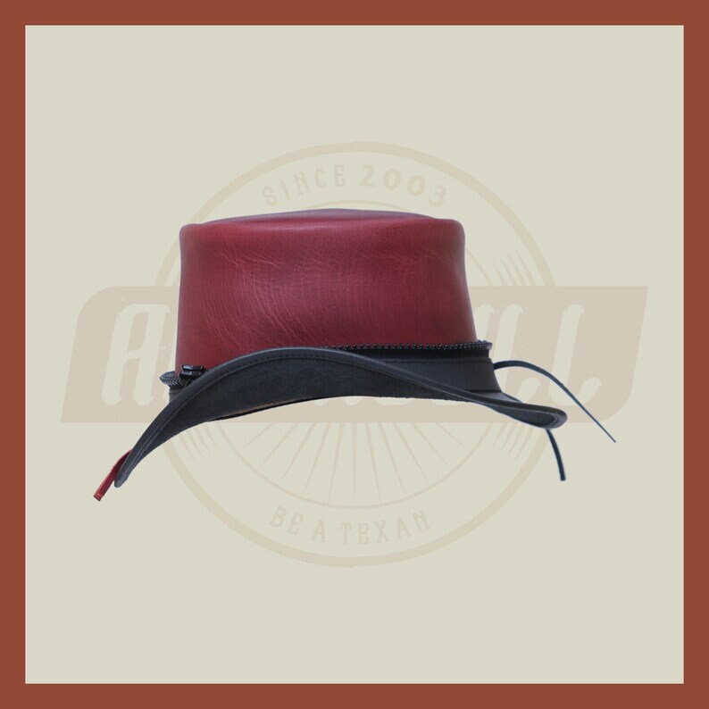 Handmade Maroon Leather Crimson Skull Biker Top Hat