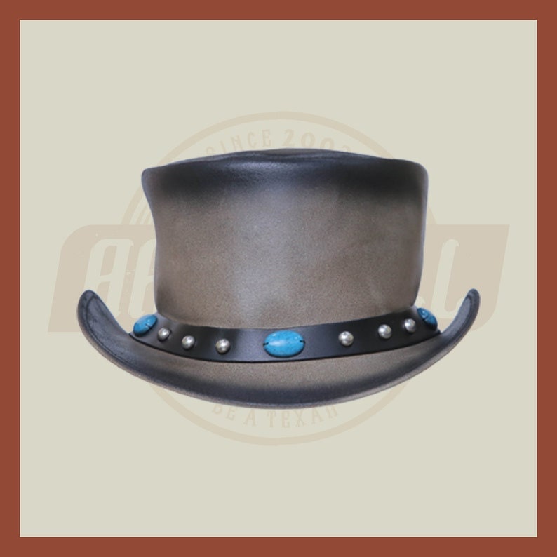 Smoke Black Shaded Stone Band Western Red Indian Leather Top Hat Steampunk