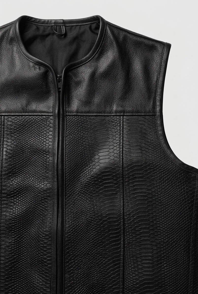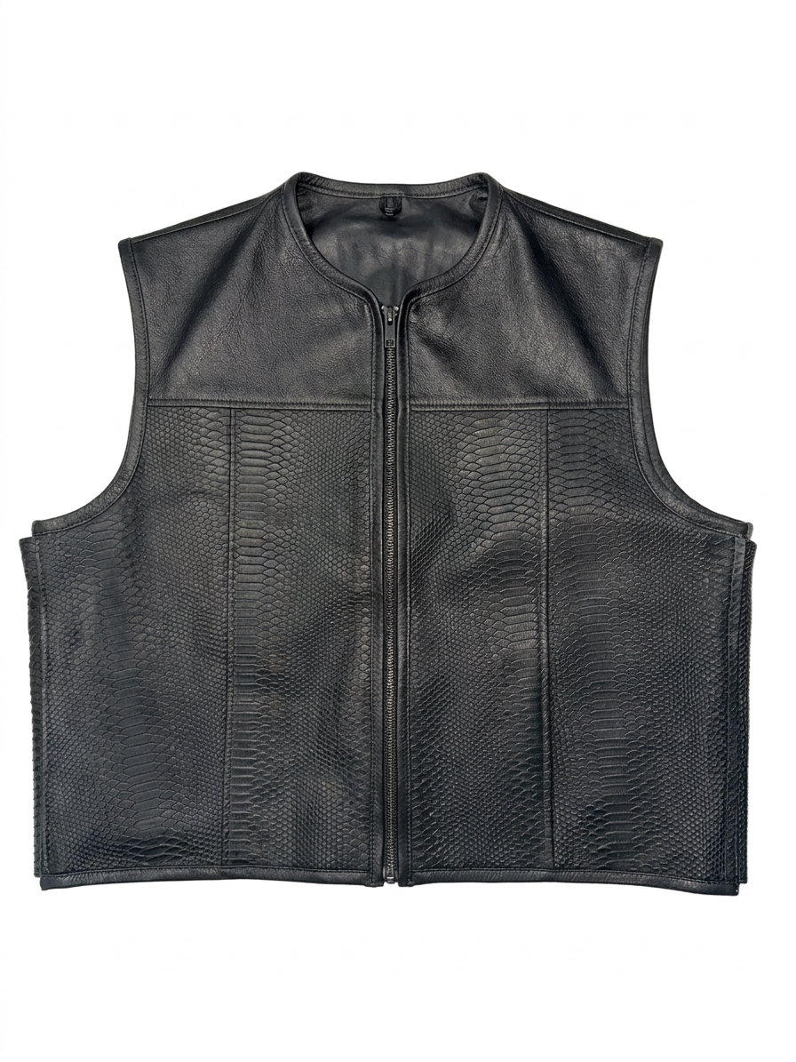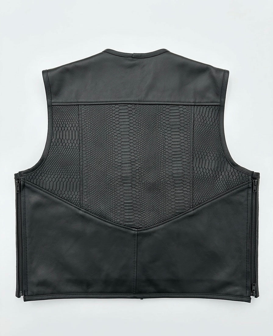 Branded Crocodile and Plain Leather Biker Vest with inside Gun Pockets