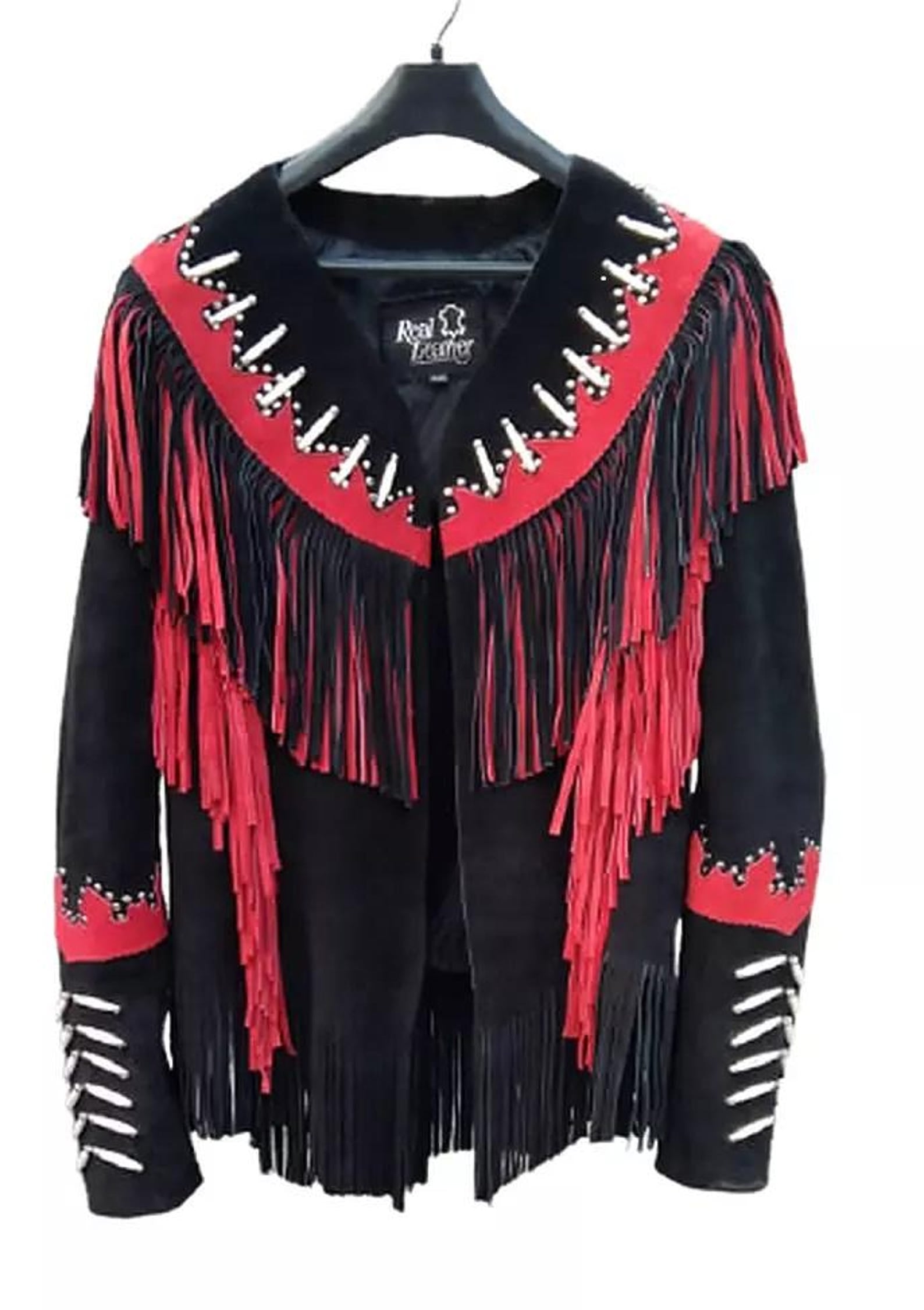 Embrace authentic Western fashion with this handcrafted Native American-inspired suede leather jacket, designed for cowgirls, rodeo lovers, and boho Western fashion enthusiasts. Made from premium genuine suede, this jacket features striking contrast fringe detailing, classic Western embroidery, and exceptional durability, making it a must-have for those who love bold, timeless Western style.