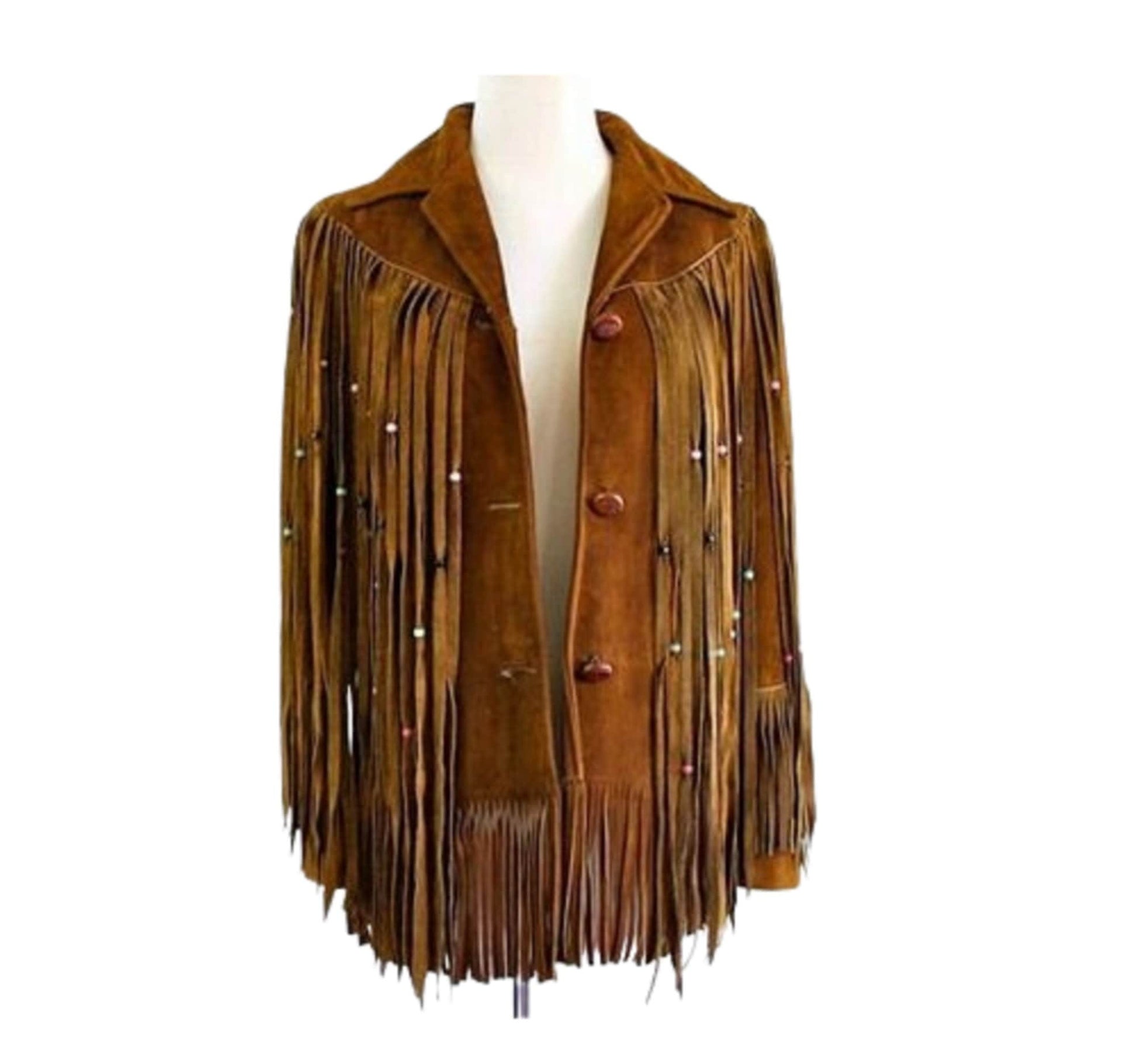Step into the spirit of the Wild West with this handcrafted Native American-inspired suede leather jacket, designed for cowgirls, rodeo enthusiasts, and lovers of Western fashion. Made from premium genuine suede, this jacket features long flowing fringes, intricate beadwork, and classic Western embroidery—a perfect blend of tradition and modern style.