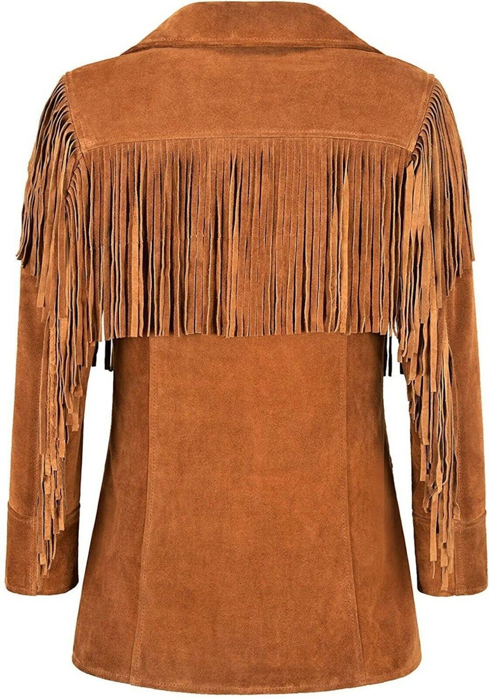 Capture the timeless spirit of the Wild West with this handcrafted brown suede leather jacket, designed for cowgirls, rodeo enthusiasts, and lovers of Western fashion. Made from premium genuine suede, this jacket features long flowing fringes, intricate detailing, and a classic Western silhouette, making it perfect for festivals, country concerts, horseback riding, or casual wear.