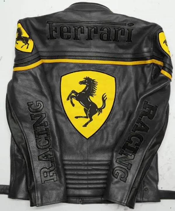 WW Ferrari Racing Black F1 Streetwear Leather Biker Jacket