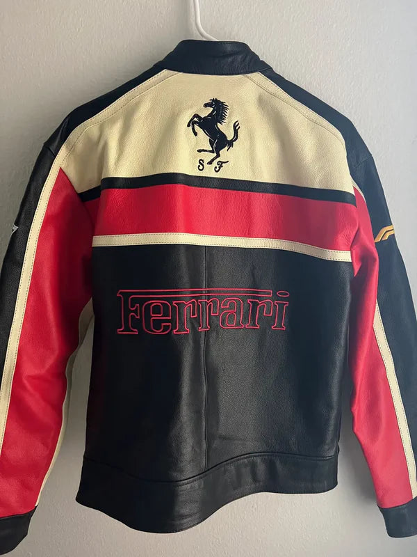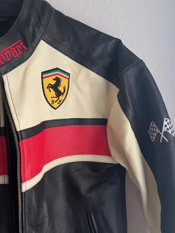 <p>Command the style grid with a piece of F1 history. This Wild Wanderers Premium Leather Ferrari F1 Racing Jacket showcases the iconic black, cream, and red colorway, authentically detailed with classic Vodafone and Shell sponsors.</p> <p>Crafted for the true Tifosi, this jacket captures a legendary era of Scuderia Ferrari dominance. Made from premium leather, it blends the high-octane heritage of the racetrack with sophisticated, street-ready style. This is more than a jacket; it's a wearable trophy for the dedicated motorsport enthusiast.</p> <p>A Legend Reborn for the Streets</p> <p>· Iconic Ferrari F1 Livery: Features the powerful and sophisticated black, cream, and red color scheme of a championship-winning era.<br>· Authentic Sponsor Logos: Adorned with classic Vodafone and Shell branding for a genuine, collector-grade motorsport aesthetic.<br>· Premium Leather Construction: Offers a superior feel, durable protection, and a sleek silhouette that ages beautifully.<br>· Track to Street Versatility: The ultimate statement piece for race days, car shows, or elevating your everyday style.</p> <p><br>Ferrari F1 Jacket Ferrari Leather Jacket Black Cream Red Jacket Vodafone Shell Ferrari Jacket Vintage F1 Jacket Premium Leather Racing Jacket Motorsport Fashion Mens Ferrari Jacket Wild Wanderers</p> <p>Wild Wanderers Gear for the Unruly Spirit</p>